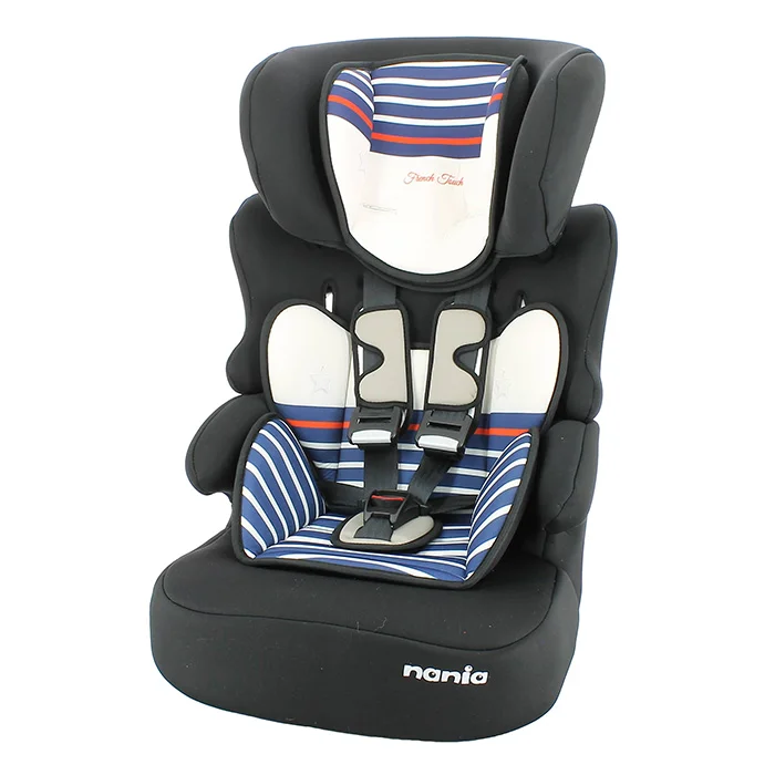 Auto-sedište Nania Beline French Blue je moderno udobno i sigurno auto-sedište za bebe i decu od 9 do 36 kg (približno od 9 meseci do 11 godina). Ovo sedište objedinjuje 3 grupe auto sedišta u jednom što ga čini ekonomičnim i praktičnim izborom. Prvo se koristi kao sedište za decu od 9 kg do 18 kg i poseduje integrisani sigurnosni pojas sa uporištem u 5 tačaka. Zatim, kod dece od 15 kg do 36 kg koristi se sigurnosni pojas automobila sa uporištem u 3 tačke. Nakon što dete navrši 6 godina ili 25 kg koristi se buster sedište koje ostaje nakon što se skine naslon. Auto-sedište sadrži udobno jastuče koje je predviđeno za grupu 1, odnosno za decu uzrasta od 9-18 kg. Poseduje ergonomski naslon za ruke i podesivi naslon za glavu. Lako za montažu i održavanje, navlaka se skida i pere u veš mašini. Sistem Side Protection (SP) obezbeđuje dodatnu bezbednost u slučaju bočnih udara.