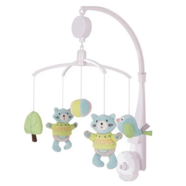 Muzička vrteška za krevetac Kit the Cat svojim zanimljivim i živopisnim igračkama poboljšava bebinu vizuelnu i slušnu percepciju