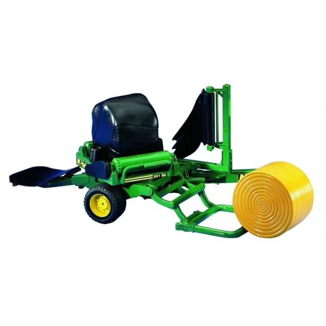 Igračka balirka poseduje rotirajući sistem obmotavanja bala kao i sistem za odlaganje bala sena.