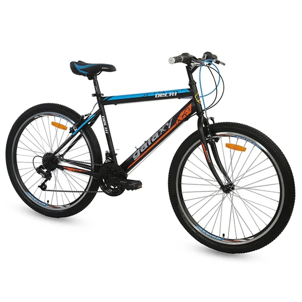 Bicikl Delhi 26 inča crna/plava/narandžasta Galaxy 650135 je snažan i moćan bicikl koji pruža punu udobnost pri vožnji kako po neravnim terenima tako i po uređenim stazama