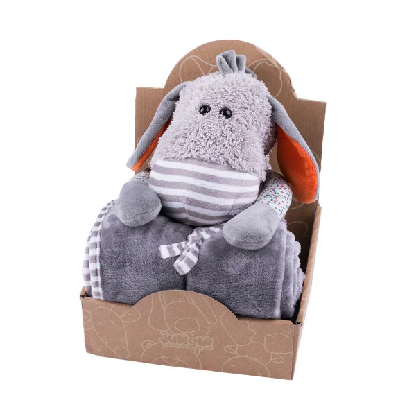 Set za bebe koji se sastoji od preslatke plišane igračke i najmekšeg plišanog ćebeta specijalno napravljen da pruži slatke snove, komfor i osećaj sigurnosti Vašem mališanu