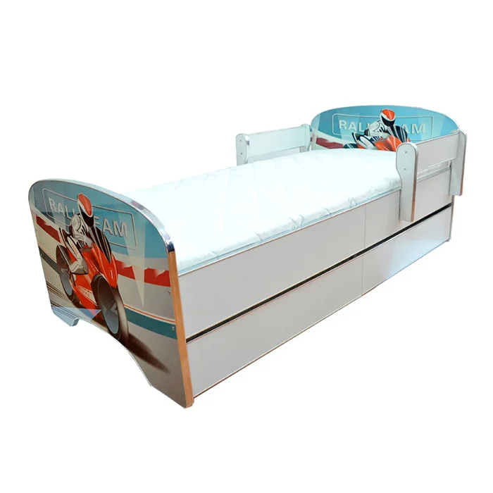 Dečiji krevet sa dve fioke za posetljinu ili neke sitnice je više nego samo udoban i siguran krevet za san vašeg deteta, jer će jedinstven dizajn kreveta oživeti celu dečiju sobu u kojoj će se svako dete rado igrati, učiti i ispunjavati male dečije snove. Nalepnice krasi mnoštvo veselih boja i napravljene su od ekoloških boja bezbednih za zdravlje. Krevet je napravljen od kvalitetnih materijala i sve ivice su zaobljene kako bi se obezbedila bezbednost i udobnost za vaše dete.