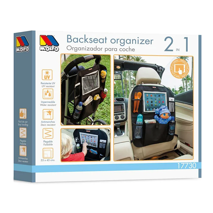 Zaštita zadnjeg sedišta sa organajzerom da sve stvari budu nadohvat ruke tokom putovanja sa bebom. Kao 2 u 1 može se koristiti u automobilima ali i na kolicima.