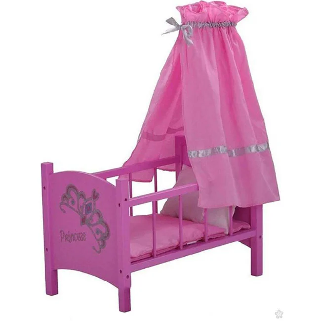 Vrhunski materijal i prelepa roza boja drvenog krevetca za lutke kao i svilenkasti rozi baldahin daju dodatnu čar igri.