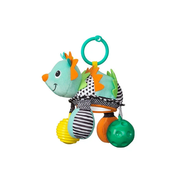 Igračka sadrži dve plastične kugle, koje proizvode zvuk kada se igračka protrese i dve mekane kugle veselih boja