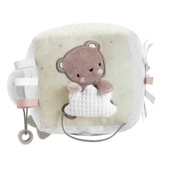 Kikka Boo plišana igračka kocka Dream Big Beige je šarena plišana kocka sa raznim detaljima aktivnosti.