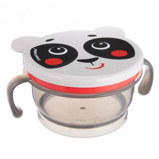 Zahvaljujući specijalno dizajniranom silikonskom poklopcu sa urezima, vaše dete može da izvadi grickalice bez da ih prospe.