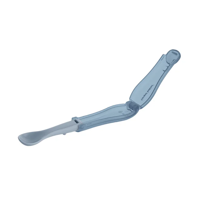 Sklopiva kašičica za hranjenje blue Canpol se otvara jednim jednostavnim klikom i spremna je za upotrebu gde god želite.