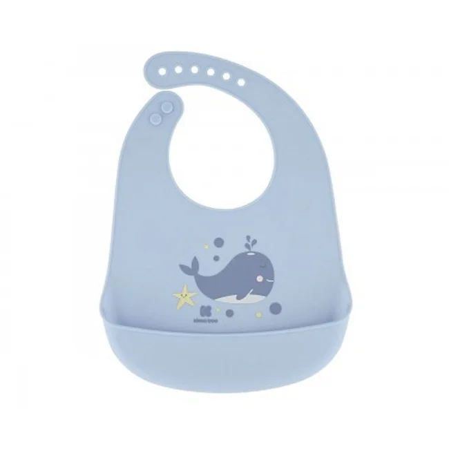 Kikka Boo dečja mekana silikonska portikla Sea World Whale blue sa džepićem za skupljanje hrane, nežna je prema dečijoj koži.
