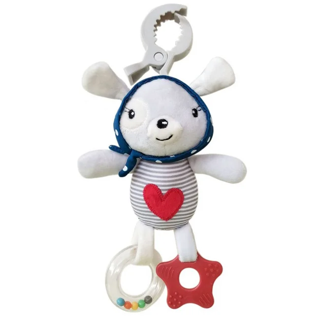 Zvečka za kolica Love Rome bogirl poseduje i plastične prstenove i gumu za žvakanje - glodalicu za desni.
