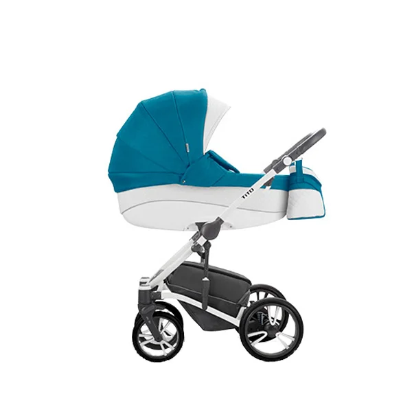 Tito dečija kolica odlikuju lagan aluminijumski ram i jedinstven dizajn. Beli ram i elegantna tkanina u kombinaciji sa kvalitetnom eko kožom čine da ova kolica za bebe izgledaju veoma atraktivno.