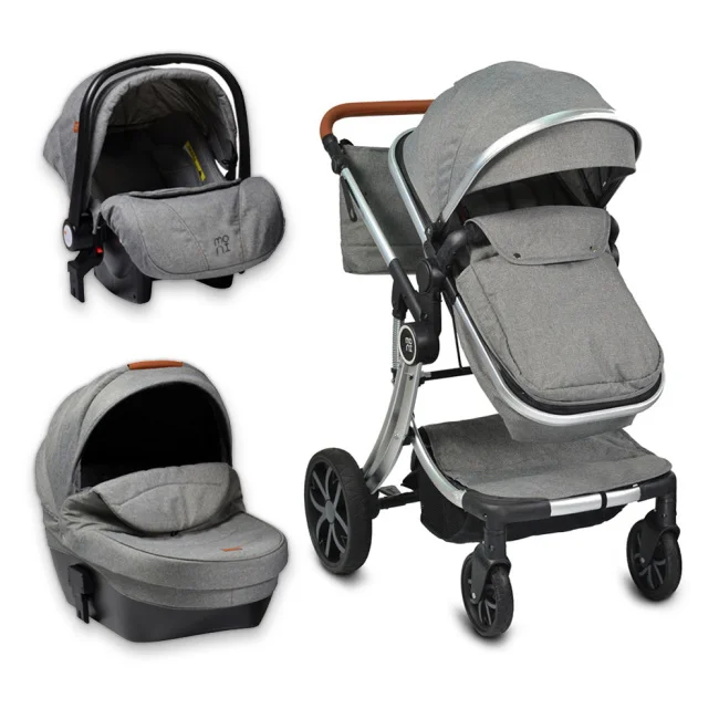 Dečija kolica 3u1 Polly trio u sivoj boji namenjena su su za decu od rođenja do 15kg težine.