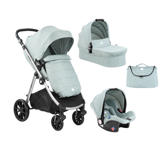 Kikka Boo dečija kolica set 3u1 Ugo mint sa tvrdom korpom i autosedištem uključuje sve što vam je potrebno za udobno putovanje vaše bebe.