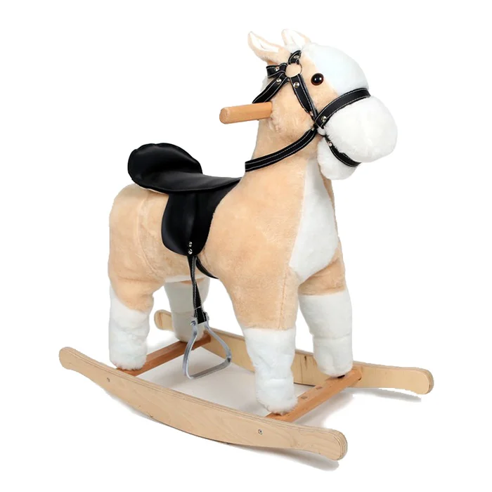 Plišana njihalica sa stabilnom drvenom konstrukcijom, bezbedna i napravljena da traje.