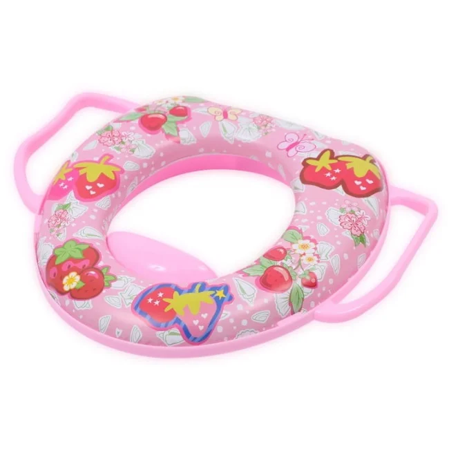 Lorelli soft trening adapter sa ručicama Strawberry pink je mekano sedište sa šarom, pogodno za obuku dece da koriste toalet.