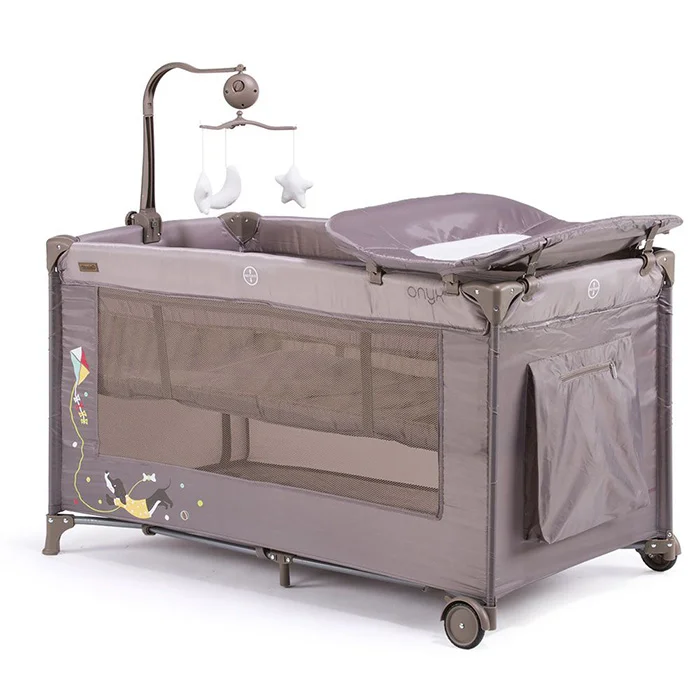 Kvalitetan presnosivi krevetac Chipolino Onyx za bebe od rođenja do 15kg. Poseduje 2 nivoa visine, dodatak za povijanje, muzičku vrtešku, veliki džep za neophodne stvari za bebu, bočni otvor radi lakšeg pristupa, 2 točkića za lakše premeštanje. Idealan je za igru i spavanje. Lagan za sklapanje, rasklapanje i transport.