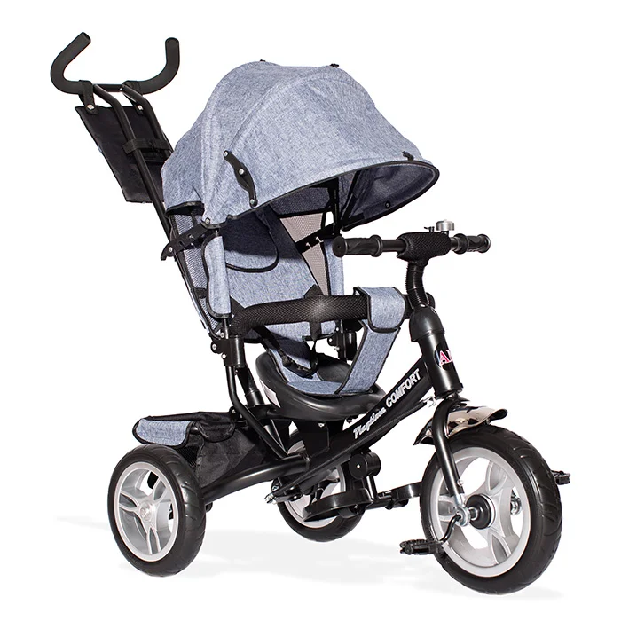 Tricikl-guralica za decu Playtime Comfort model 417/1 sa podesivim naslonom sedišta, tendom od lanenog platna i velikim točkovima.