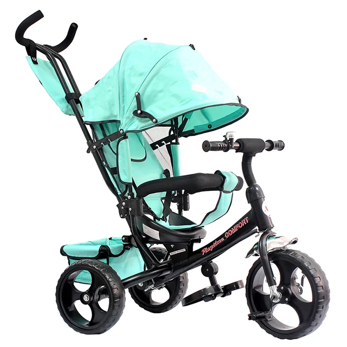 Jaka metalna konstrukcija čini osnovu ovog tricikla - guralice gabaritnog izgleda čija je dužina oko 90cm, a visina preko 1m. Plastični delovi su izrađeni od jake plastike koja je otporna na atmosferske prilike i ne bledi na suncu. Tenda detetu pruza zaštitu od sunca i vetra, a mekano sedište dodatno omogućava bezbednu vožnju za decu mlađeg uzrasta. Tricikl je multifunkcionalan, kako dete raste možete ga prilagoditi tako što ćete ukloniti držač za noge, ručicu za guranje i tendu, i dobijate klasičan tricikl koje dete samostalno vozi sve do predškolskog uzrasta.